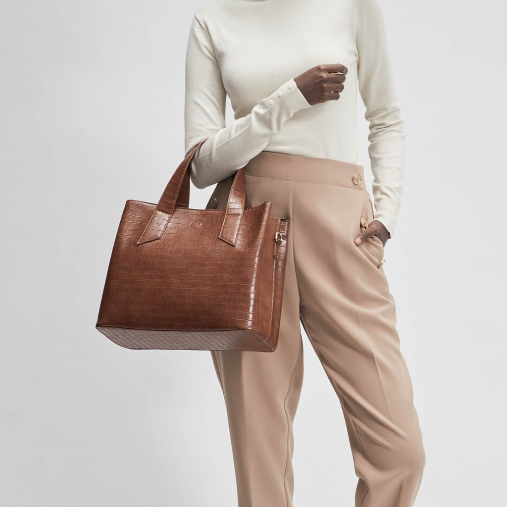 ARIANA Croco Vegan Shoulder Bag - Cognac
