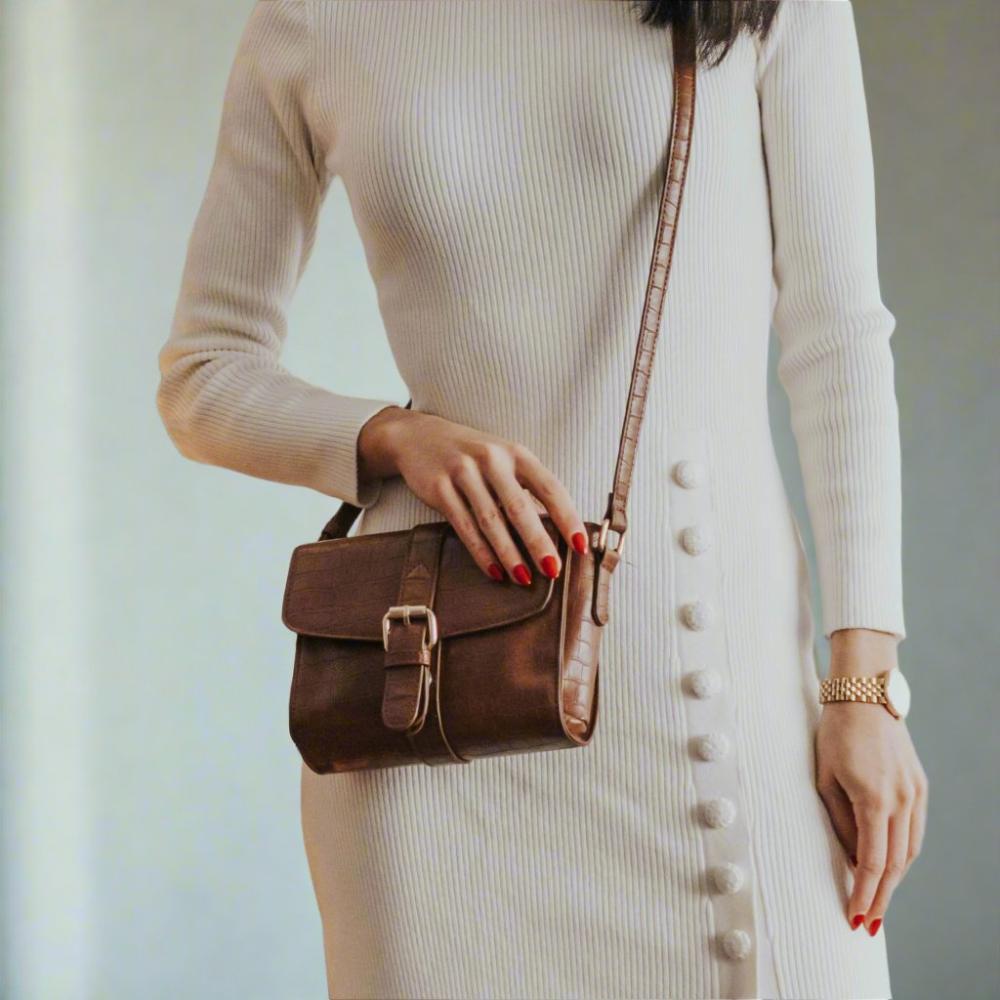 Upgrade your collection with the LINDSAY II Croco Vegan Crossbody in Black. Designed in Montreal, this vegan handbag features a croco texture from recycled materials. It includes a flap with a magnetic snap closure, a zip pocket, and pouch pockets for organization. The adjustable strap ensures comfortable, hands-free wear. Perfect for any outfit, this designer crossbody combines style with sustainable functionality.