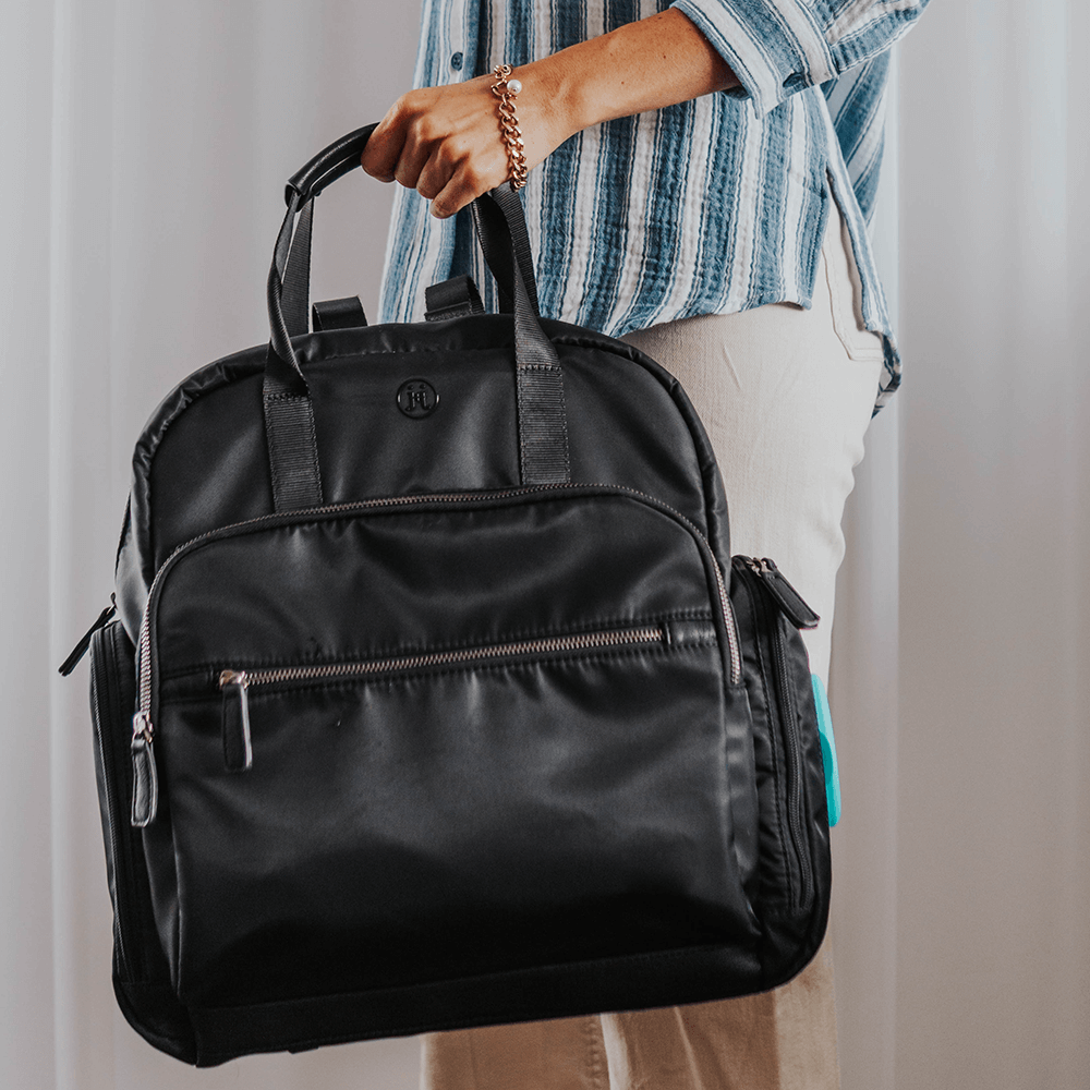 The RIVER Unisex Diaper Backpack is designed for modern parents on the go. Made from durable nylon, it features two front zip pockets, a side pocket for baby wipes, and an insulated pocket for bottles. Includes a wipe-clean changing mat and adjustable, padded straps for comfort. This backpack is as practical as it is stylish.
